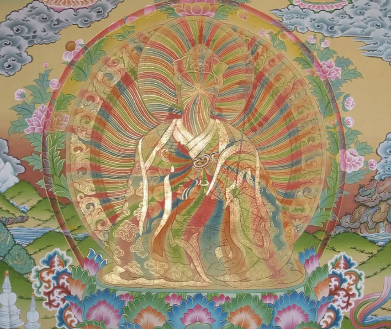 Sitting here, resting in the myriad display of appearances, the unceasing luminosity of the ground appears as the infinite play of dependent origination. This energetic expression points to the ground, yet there is no ground. Simply resting in complete openness, utterly beyond all thought or description, the unceasing dance of